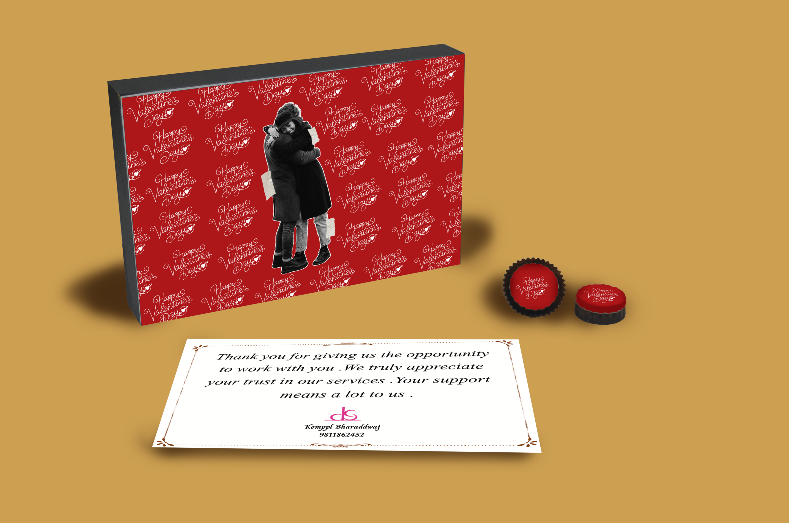Name & Photo Upload the photo for the box and chocolates. Provide the name for printing on the box.